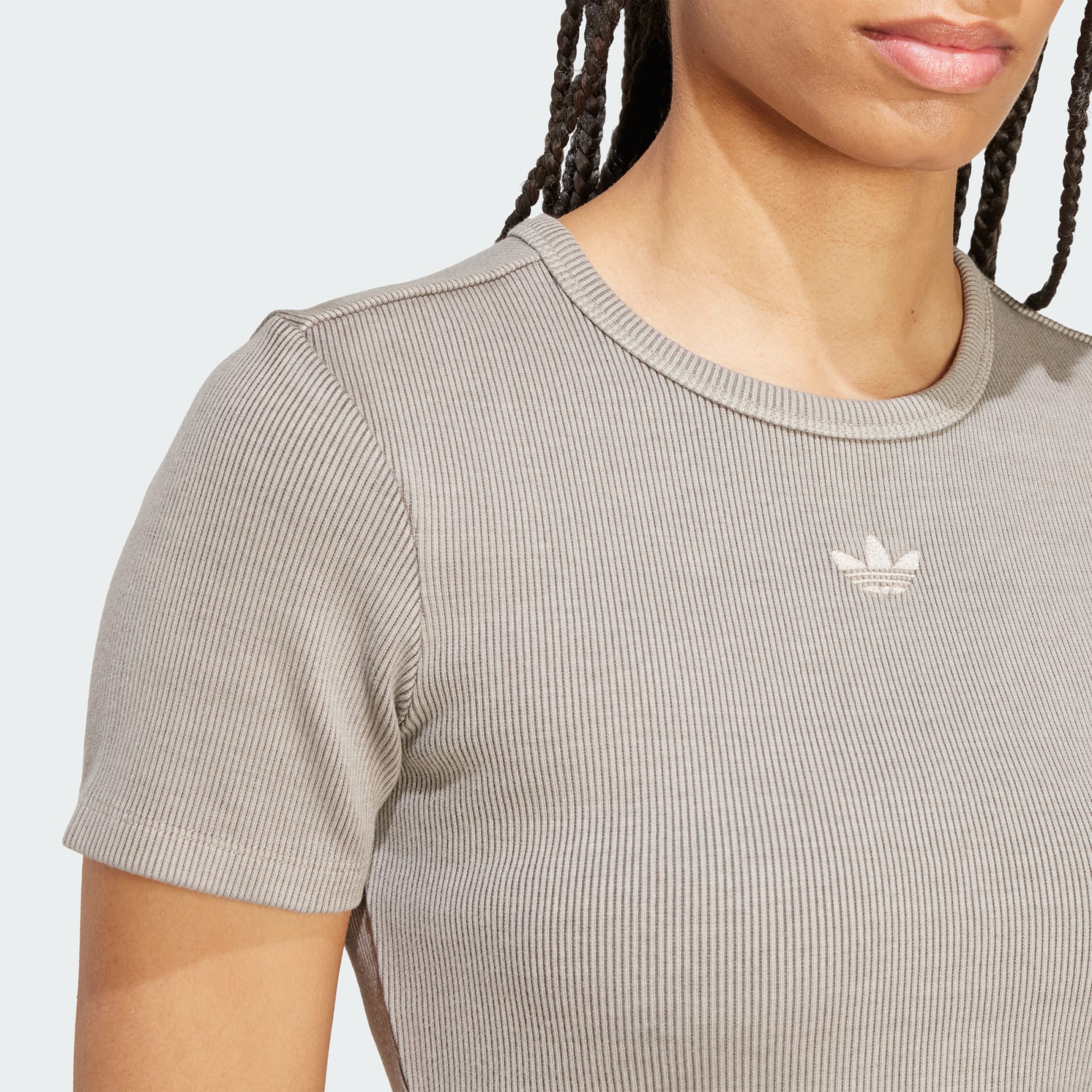 Un vestido de canalé con un sutil estilo de adidas Originals