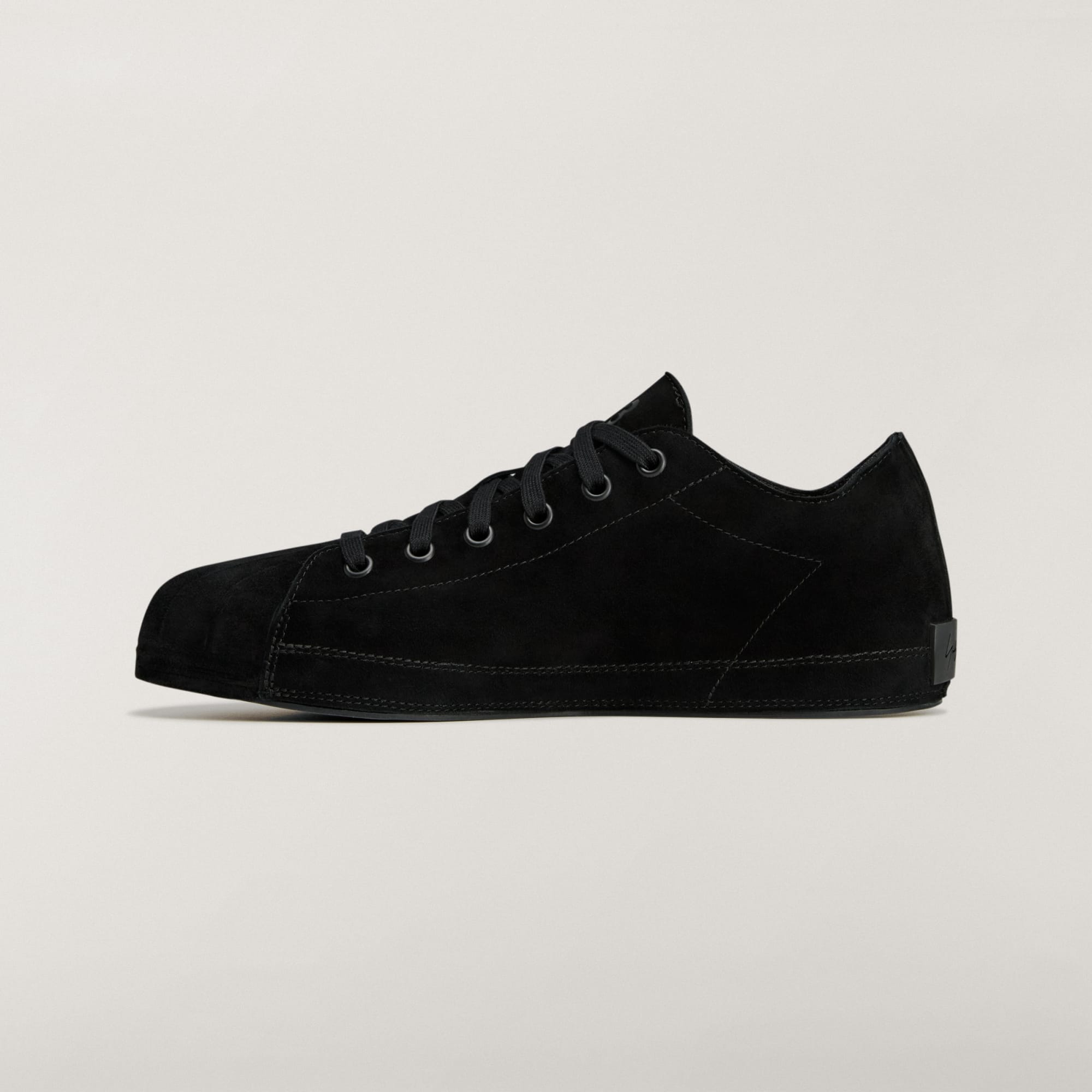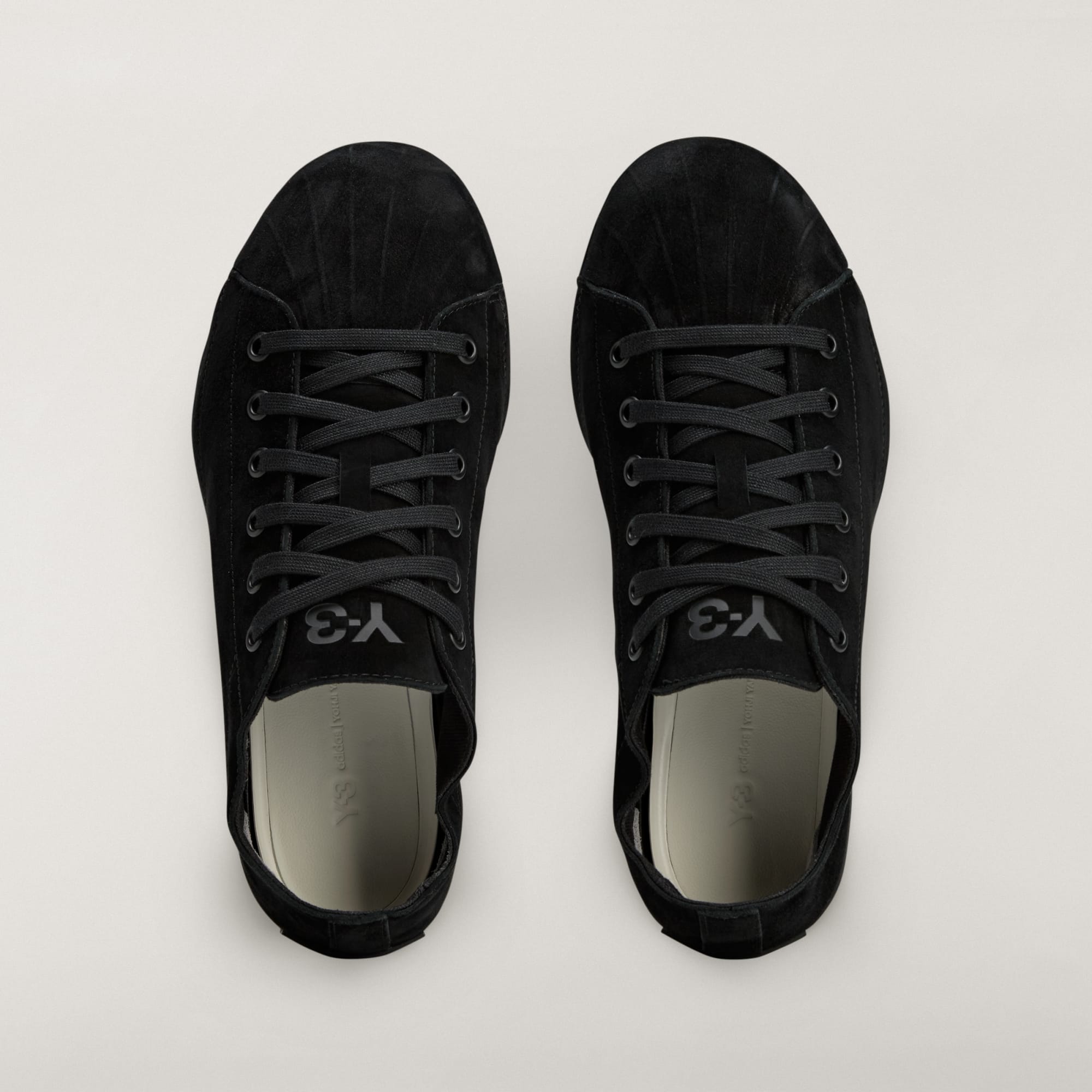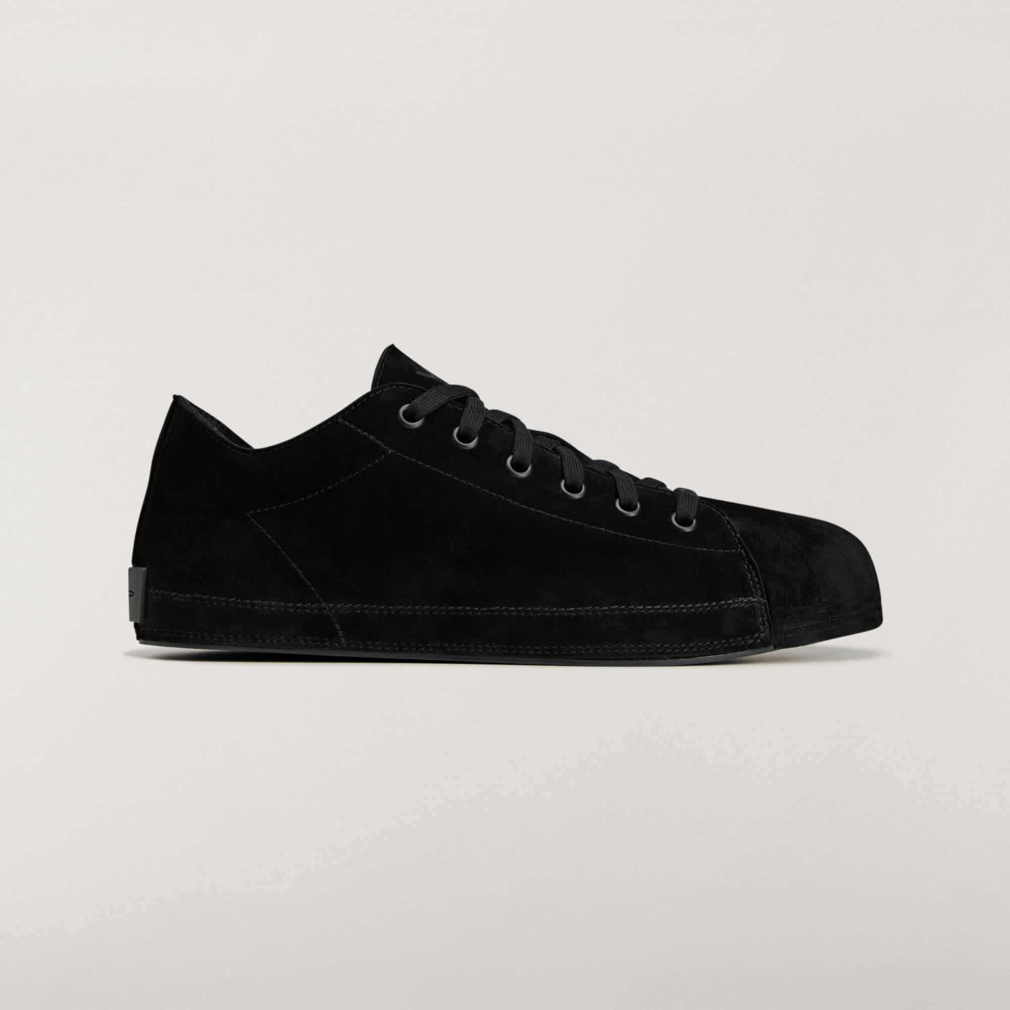 Este estilo combina los mundos de la zapatilla adidas Superstar y Nizza. Este diseño de caña corta, que se basa en la misma construcción de la mediasuela ultraprogresiva que la Y-3 NIZZA, presenta un empeine enteramente de ante que se alarga hasta cubrir la suela (incluida la icónica y mítica puntera de la zapatilla adidas Superstar) y crea un estilo inconfundible pero minimalista. Como toque final, luce el logotipo de Y-3 en la lengüeta y la firma de Yohji Yamamoto en el refuerzo del talón.