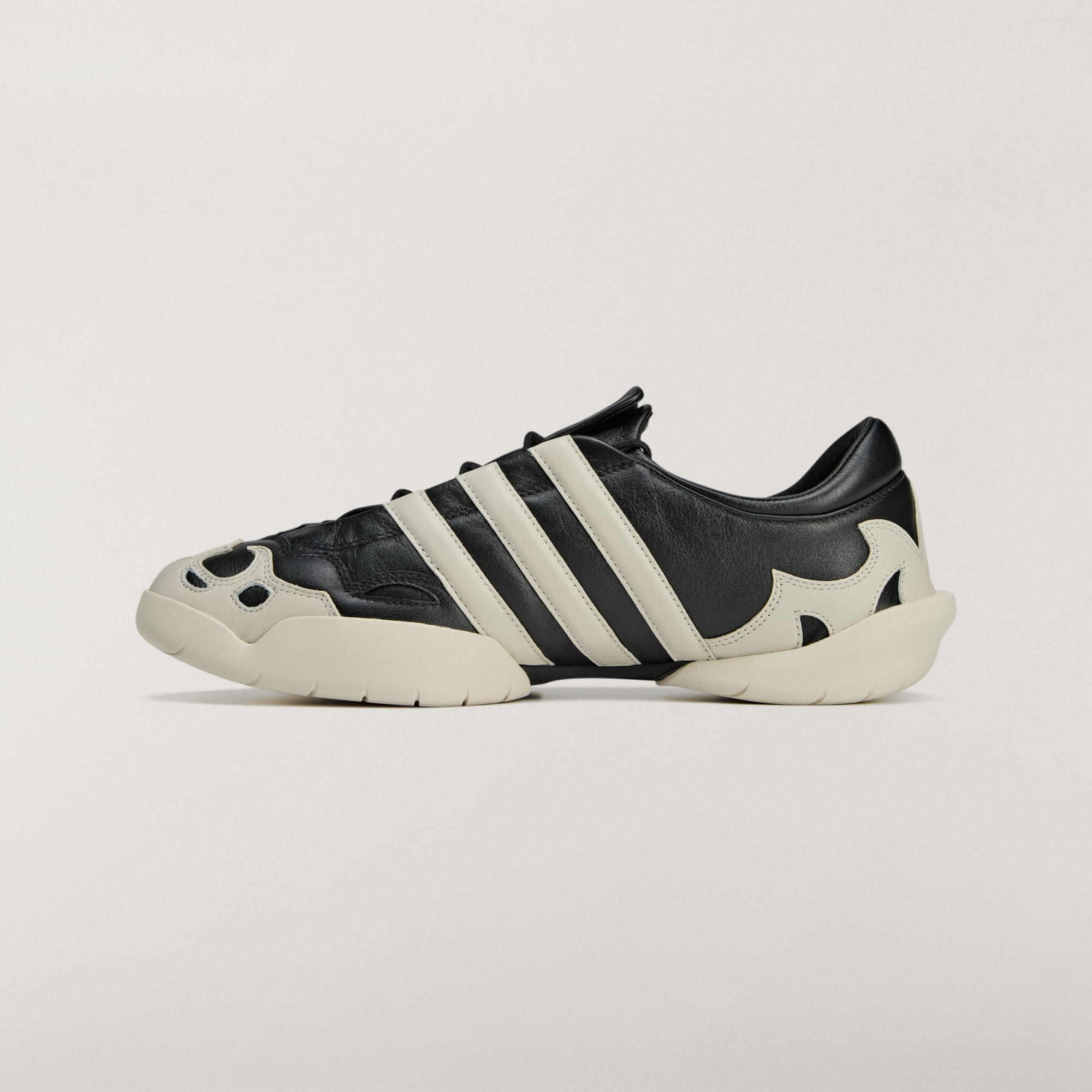 La Y-3 Regu 2002 se inspira en una zapatilla influyente de principios de los 2000, la Mei, y reinterpreta su provocativo diseño para el presente. Su célebre silueta está confeccionada en suave cuero, con inserciones adicionales del mismo material que recuerdan ornamentos: un diseño impregnado con la estética de archivo de Y-3. Por debajo, la estructura está mejorada con una fina placa Dynamic Torsion System, que conecta el talón con el antepié.