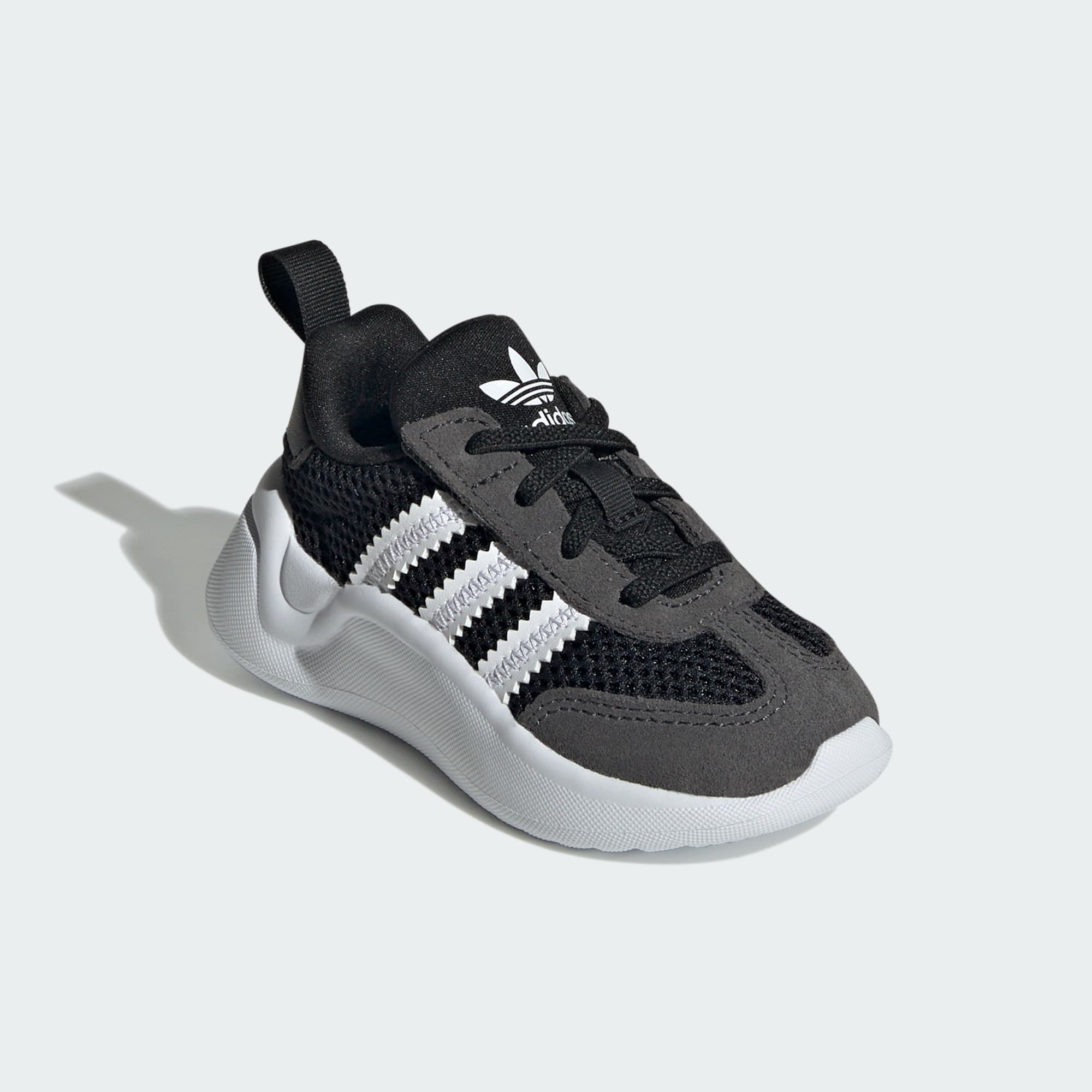 Esta zapatilla adidas ofrece a tu peque la máxima comodidad y un diseño retro único. El empeine de malla perforada con refuerzos de ante le brindan un ajuste cómodo y un estilo impecable. Los cordones elásticos te permiten calzarle y descalzarle fácilmente. La suela de EVA y la plantilla OrthoLite® le ofrecen una pisada cómoda y la sujeción que necesitan sus pies.