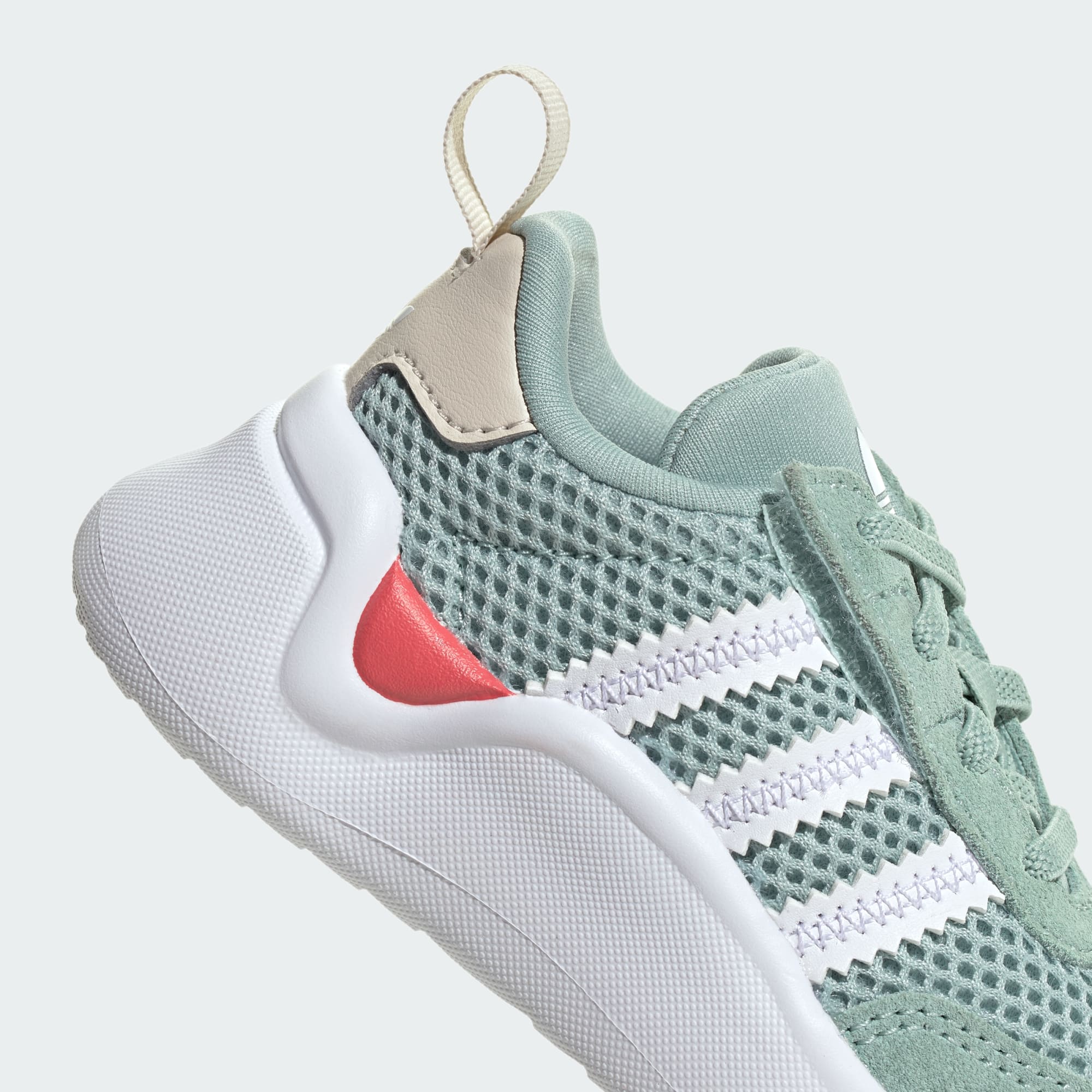 Esta zapatilla adidas ofrece a tu peque la máxima comodidad y un diseño retro único. El empeine de malla perforada con refuerzos de ante le brindan un ajuste cómodo y un estilo impecable. Los cordones elásticos te permiten calzarle y descalzarle fácilmente. La suela de EVA y la plantilla OrthoLite® le ofrecen una pisada cómoda y la sujeción que necesitan sus pies.