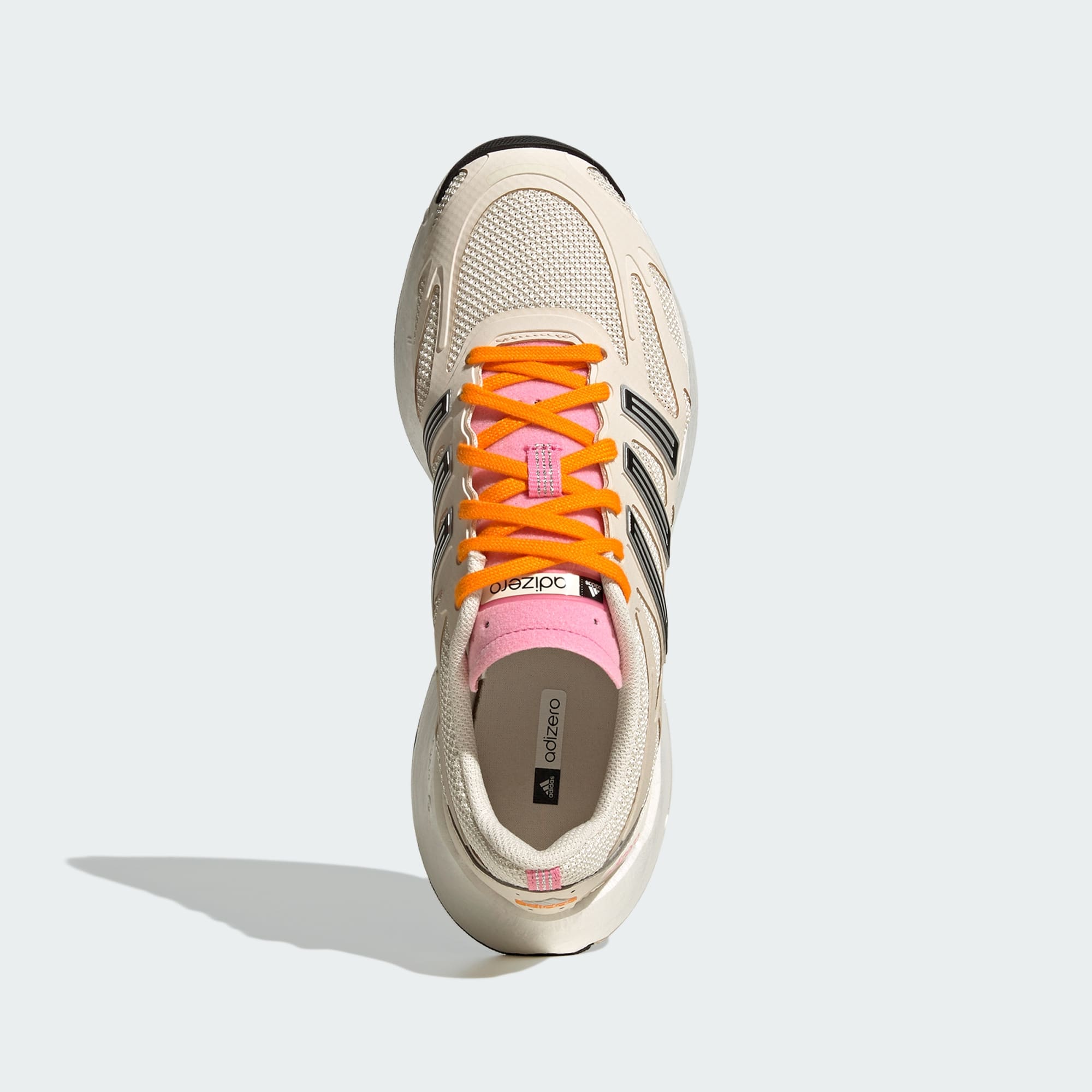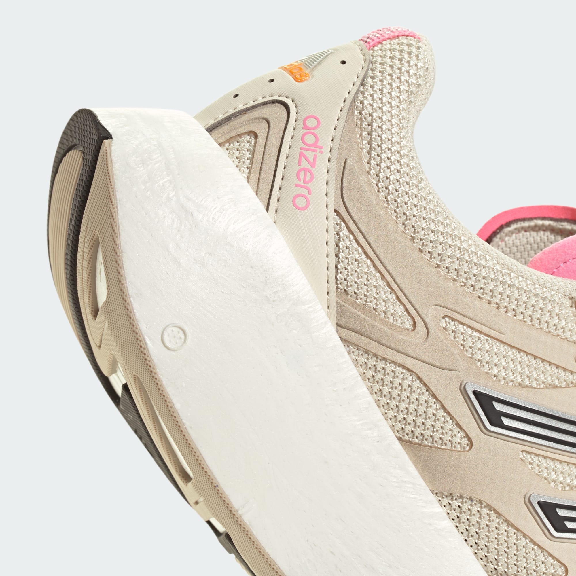 El llamativo diseño de la parte superior refleja los códigos estéticos de los modelos de running ADIZERO de los 2000 para que una nueva generación los reinterprete a su manera.