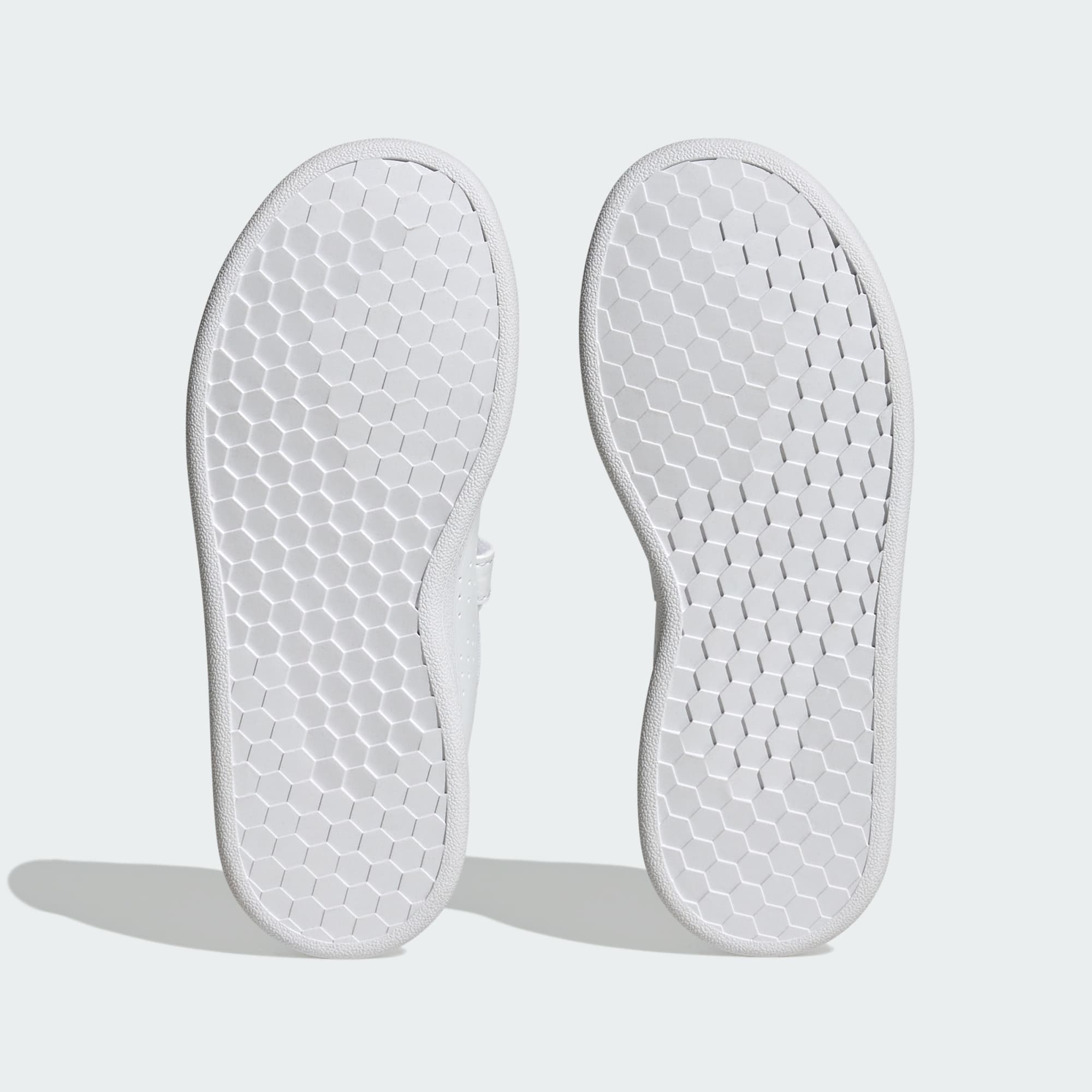 Esta zapatilla adidas para pequeños deportistas presenta un diseño sencillo y llamativo inspirado en la silueta Grand Court. Los logotipos en la lengüeta y el talón le aportan un toque clásico. Resulta fácil de quitar y poner gracias a las correas autoadherentes. La suela de goma resiste las exigencias de las actividades extraescolares.