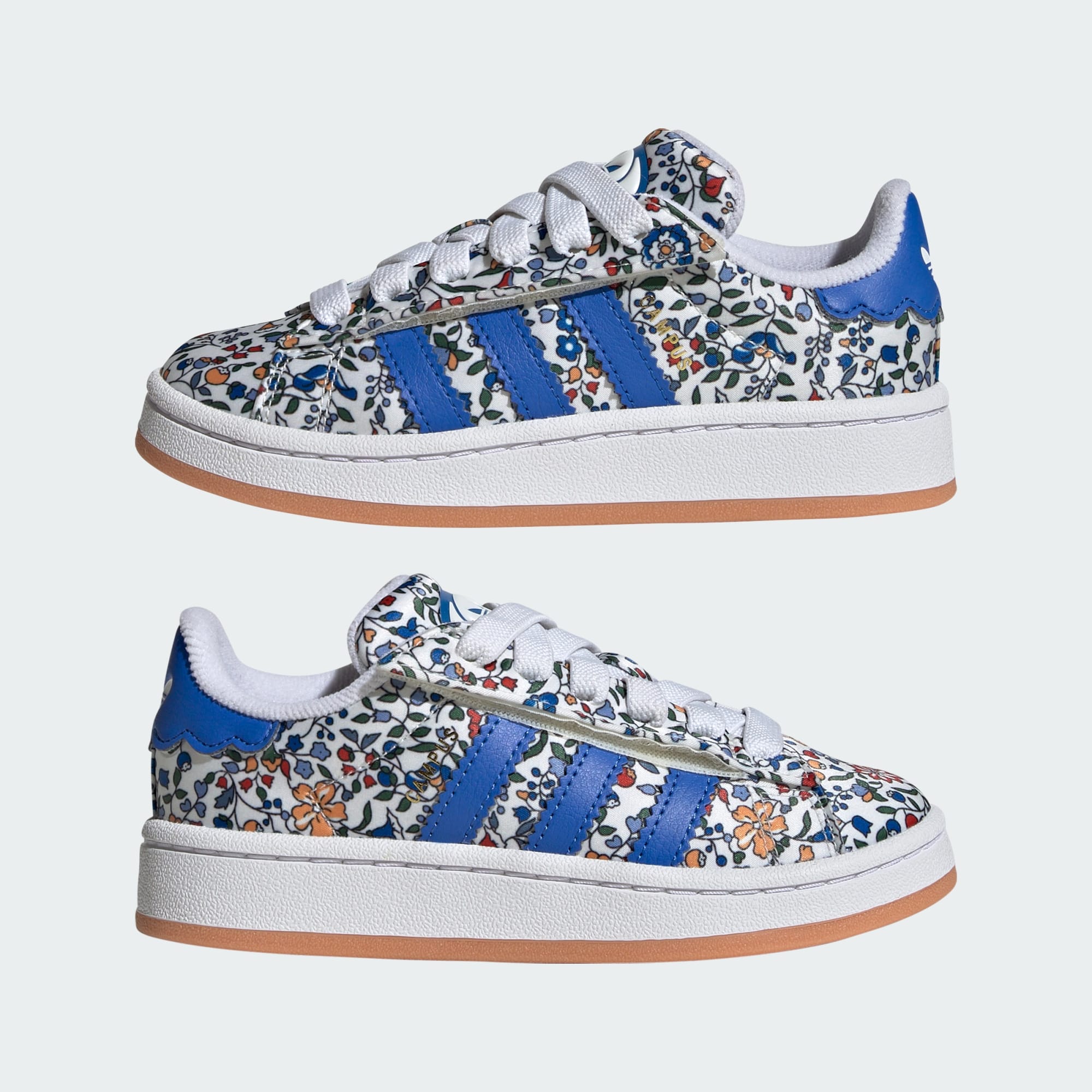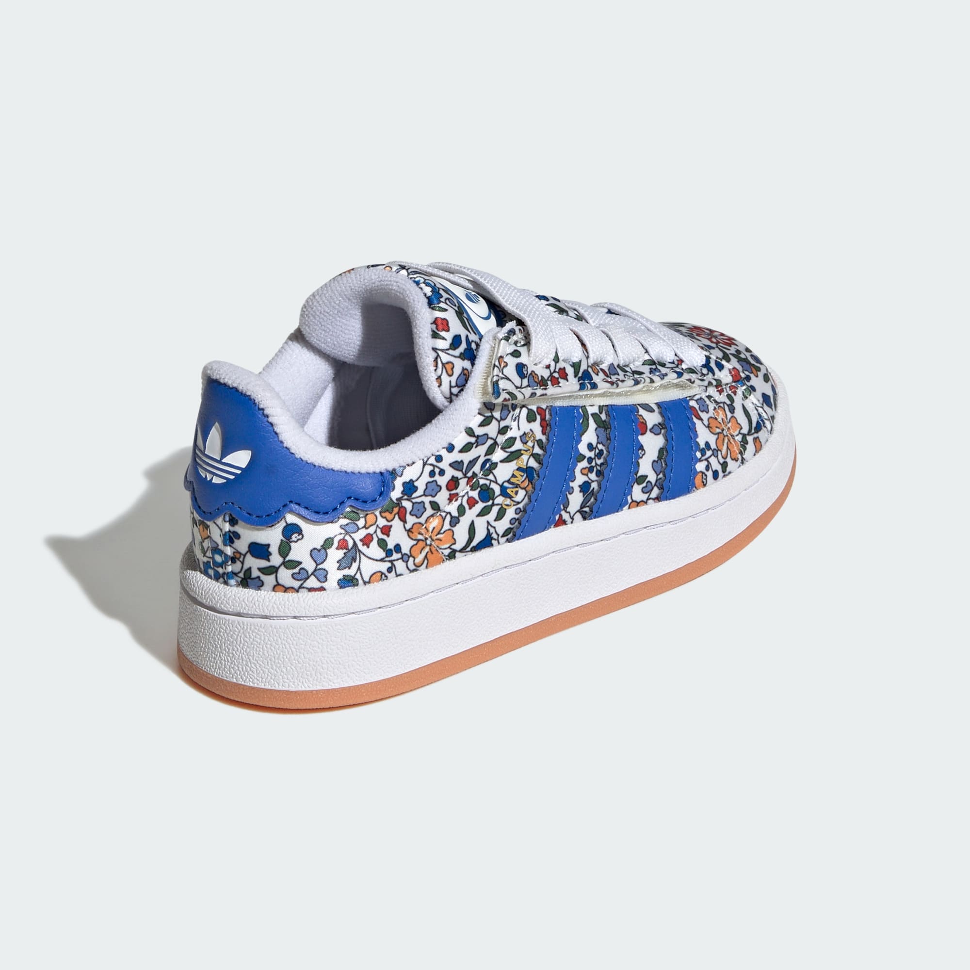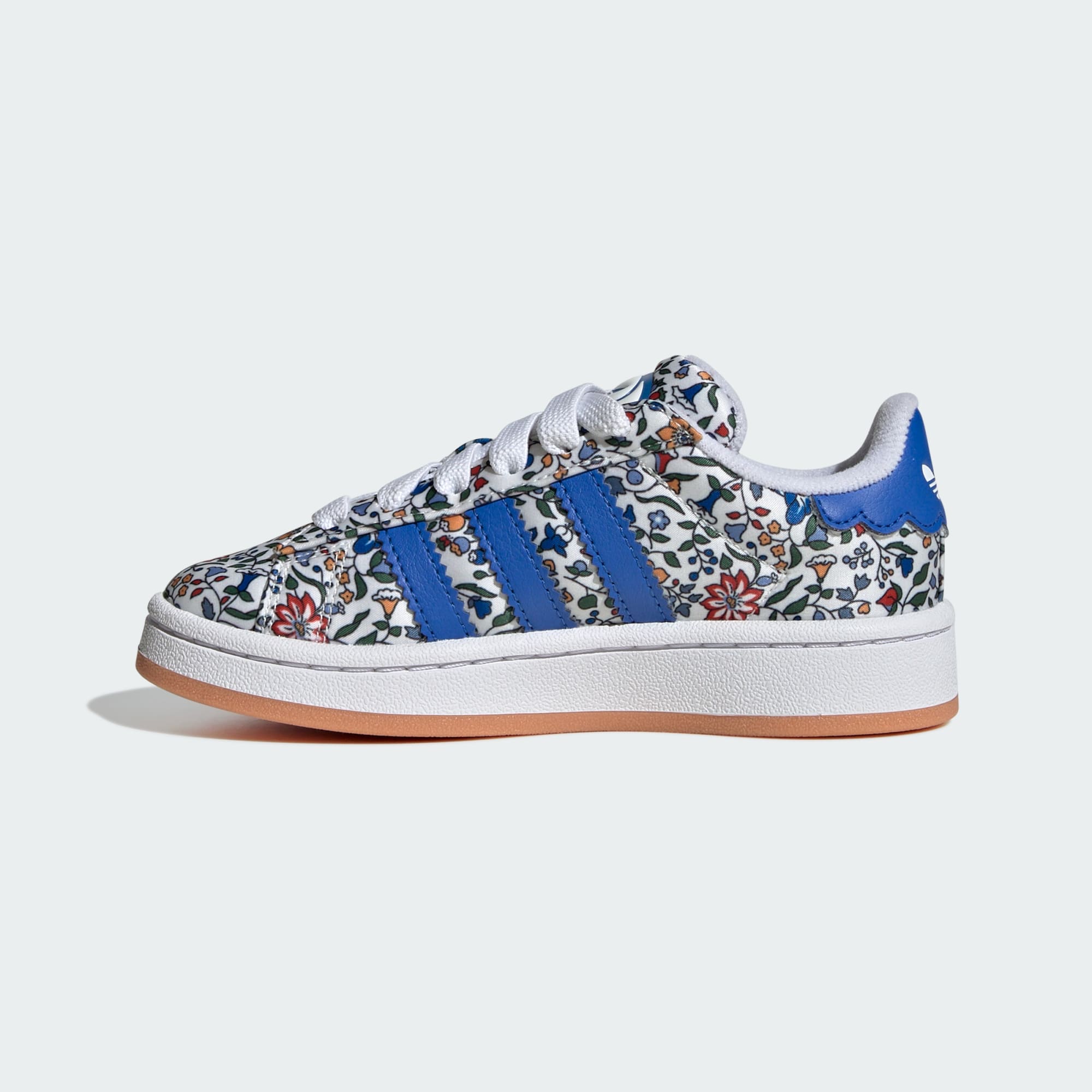 La zapatilla Campus de adidas tiene un legado que abarca décadas, y este par para niño continúa la tradición. El empeine suave está decorado con un estampado floral inspirado en Liberty London, perfecto para los días soleados y las aventuras. El ajuste cómodo y el diseño de perfil bajo los mantienen ligeros al caminar, mientras que la suela de goma proporciona tracción.