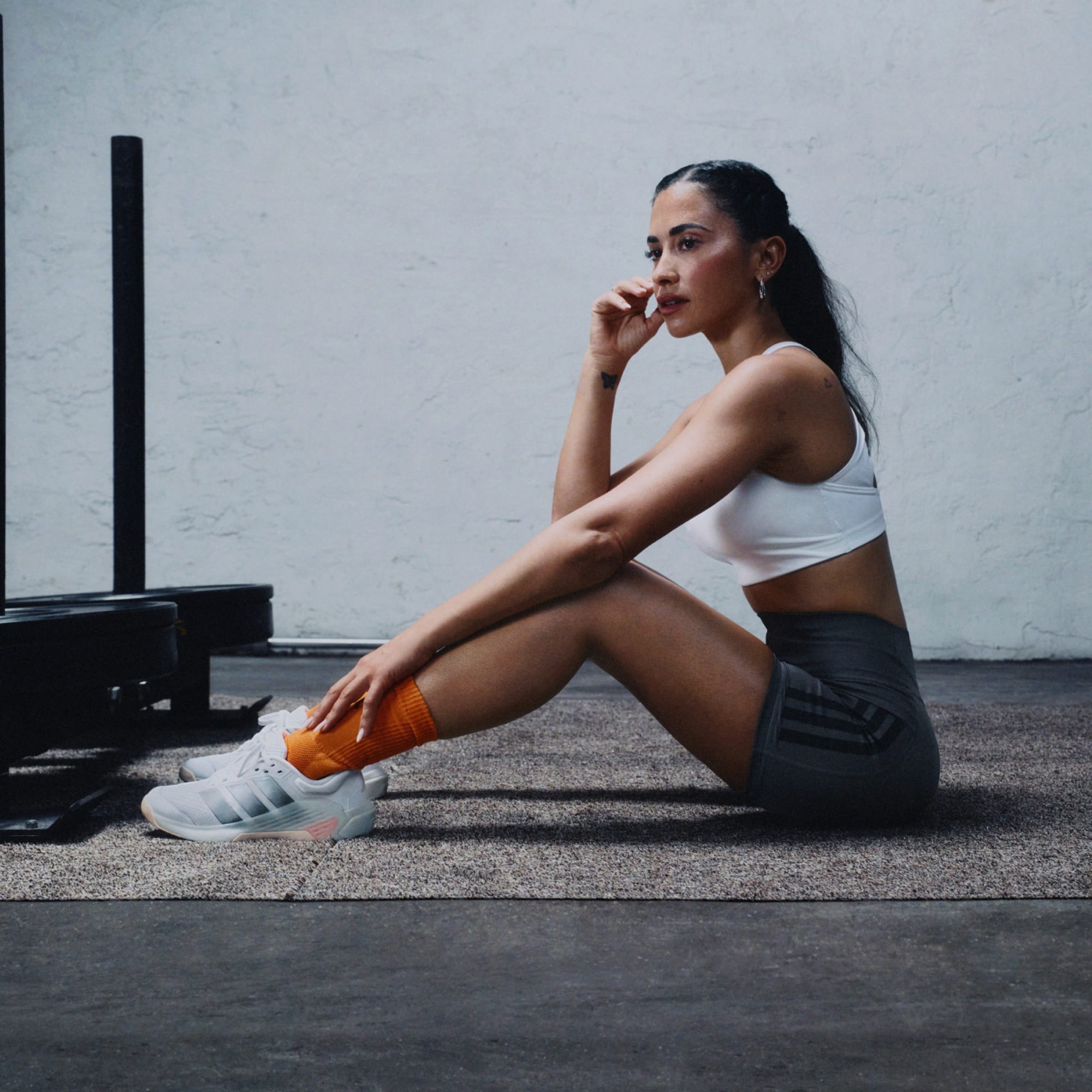 Vídeo que muestra a una mujer corriendo, saltando y levantando pesas con la nueva zapatilla de entrenamiento de fuerza Dropset 4.