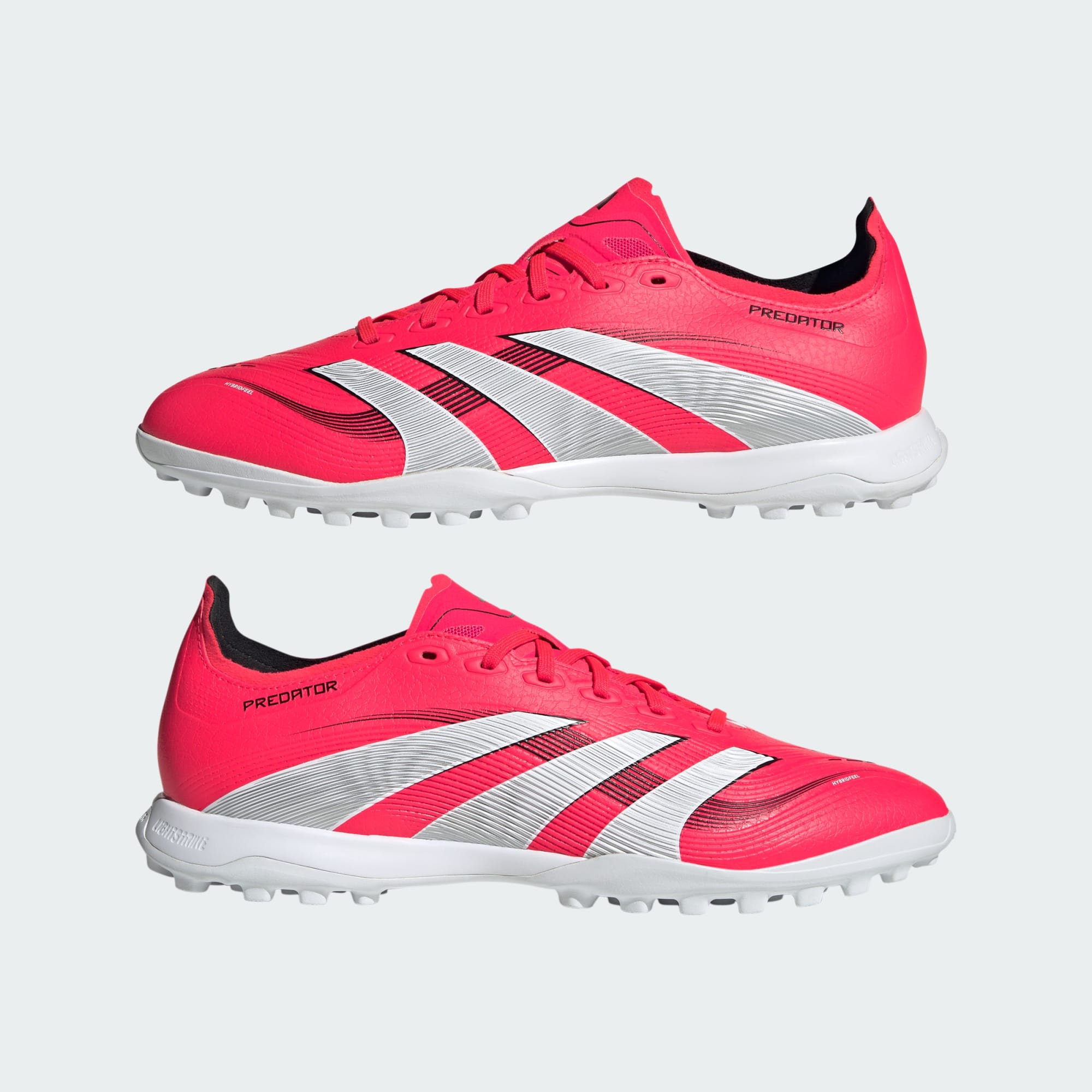 Comienza cada partido sabiendo que perforarás la portería con esta zapatilla de fútbol adidas Predator League creada para marcar goles. Presenta un empeine Hybridfeel con textura en relieve e inserciones Strikescale que te proporcionan un control excepcional del balón en cada disparo. La suela de goma estriada te garantiza una excelente tracción en campos de moqueta.