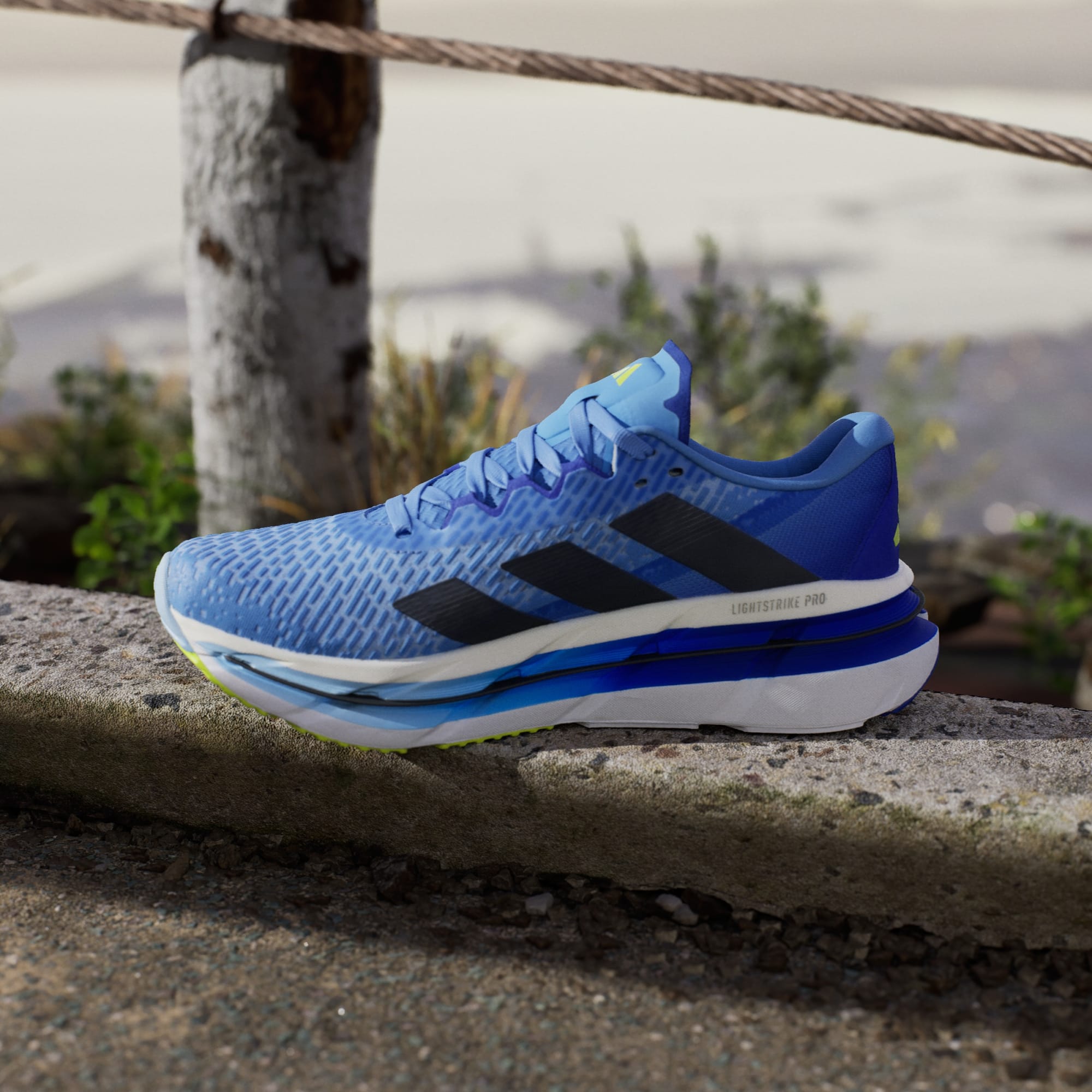 Esta zapatilla de running Adistar de adidas te ayuda a mantener un ritmo constante en las carreras de larga distancia. La mediasuela REPETITOR 2.0 imprime energía a tu zancada mientras envuelve el talón para una mayor sujeción kilómetro tras kilómetro. La amortiguación Lightstrike Pro y la placa de carbono Distance Drive te ayudan a conservar la energía en largas distancias. La suela con compuesto de caucho Continental™ te brinda un excelente agarre en suelo seco y mojado para que puedas batir tu mejor marca en cualquier situación.