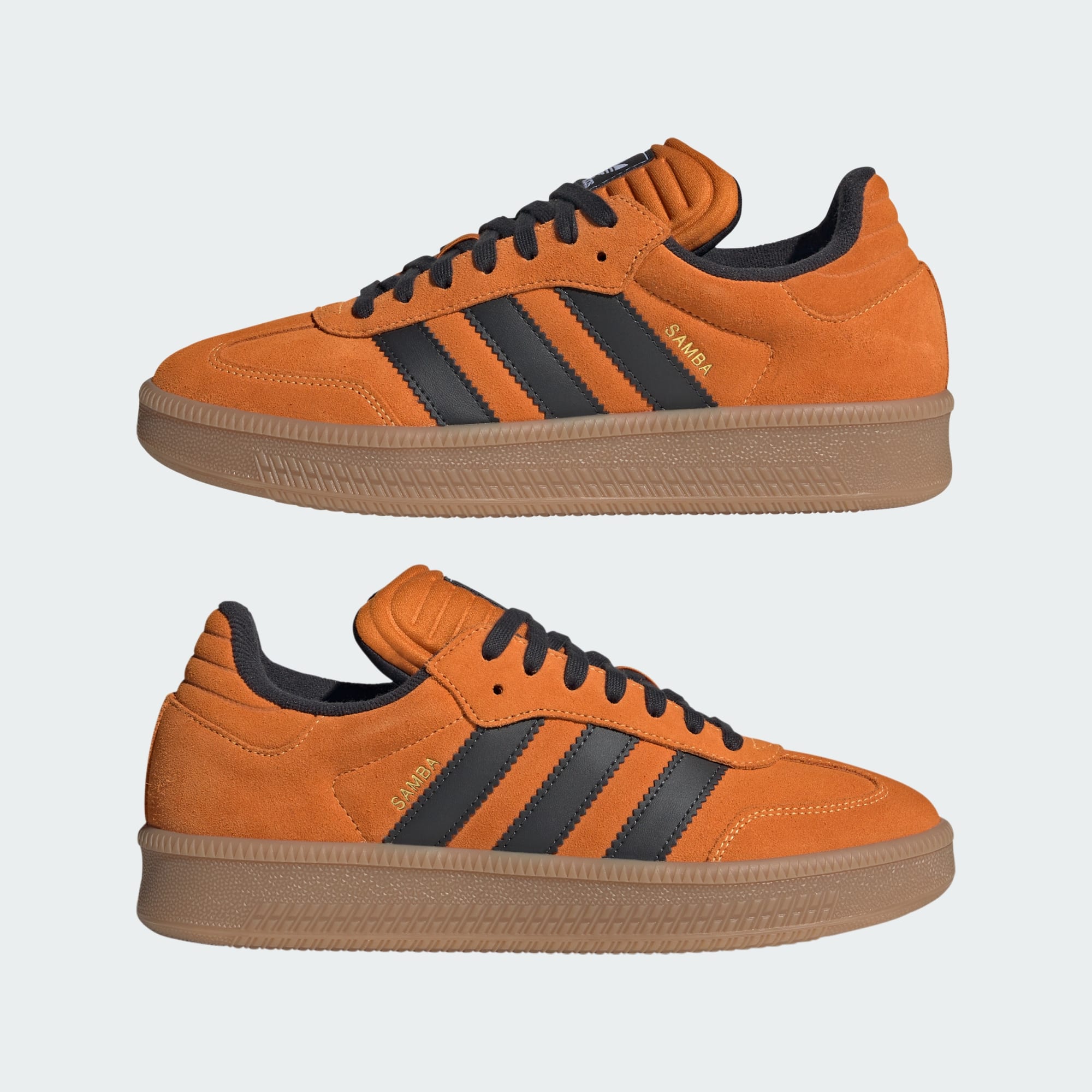 Esta temporada, otro de nuestros iconos se renueva con la estética XLG. Esta zapatilla, una versión gigante de nuestra mítica Samba, presentan una lengüeta más acolchada y una suela más gruesa que la original. Está diseñada con un empeine totalmente de ante e incorporan las 3 bandas de piel sintética y un forro textil suave. Los toques de color oscuro en el forro, los cordones y las 3 bandas crean un diseño innovador que contrasta con la base más clara. La inconfundible puntera en forma de T es herencia directa de la original.