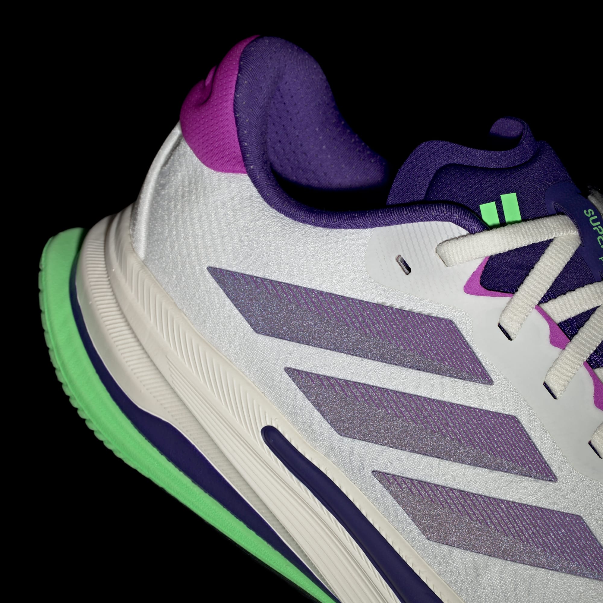 - Color del artículo: Core White / Collegiate Purple / Lime Burst
