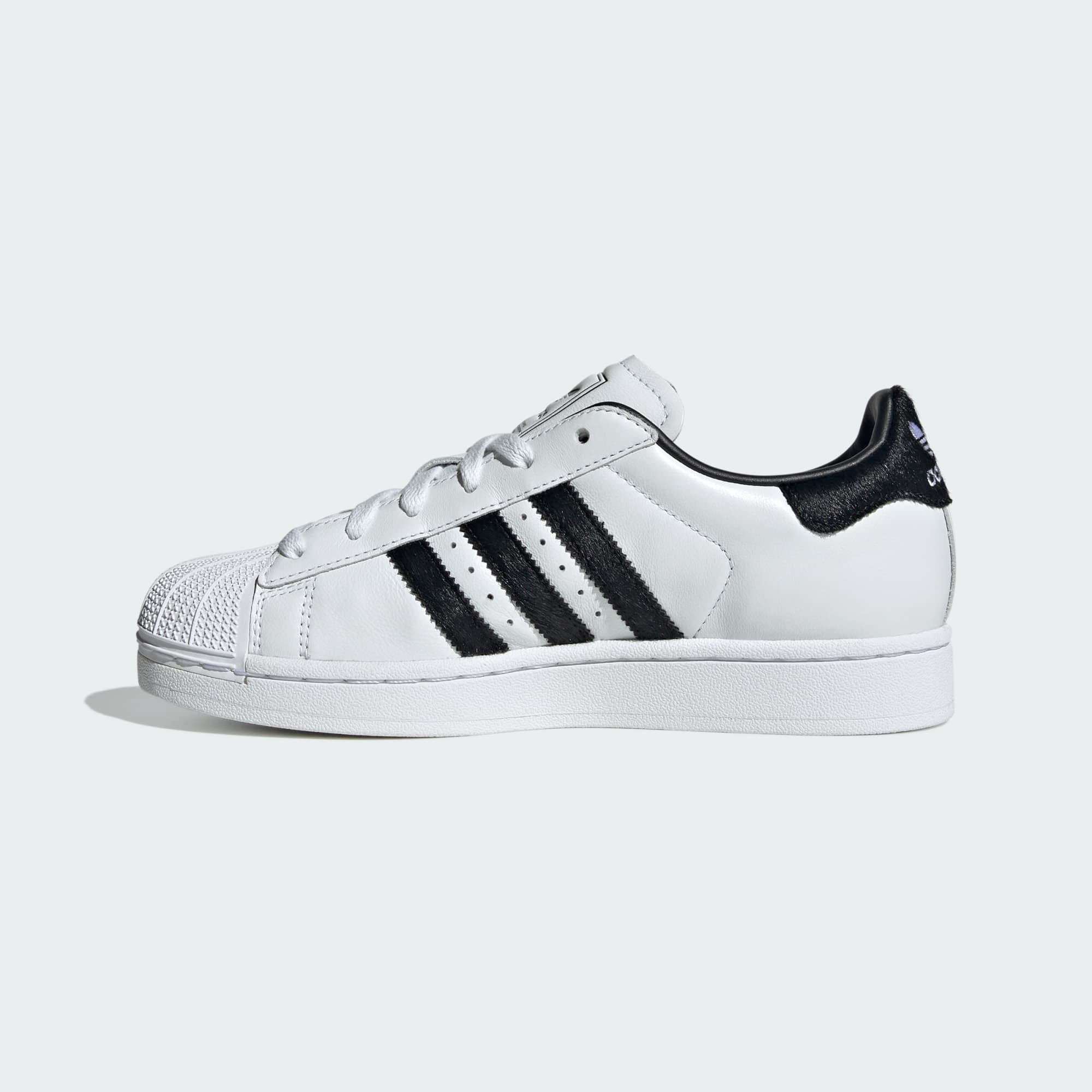 La adidas Superstar lleva más de medio siglo siendo un icono del deporte y la cultura. Esta versión renovada rinde homenaje a su legado con un estilo actual. El empeine de piel suave le confiere un look clásico, mientras que las 3 bandas y el refuerzo del talón en pelo de potro le aportan un aire sofisticado. La mítica puntera de goma remata el diseño marcando el camino a seguir y la suela de goma cosida con dibujo de espiga conserva la esencia del modelo original. Cálzate un pedacito de la historia de adidas con esta emblemática zapatilla que aporta un toque moderno a cualquier look, ya sea combinada con vaqueros, piratas de corte alto, una elegante falda de tubo y mucho más.