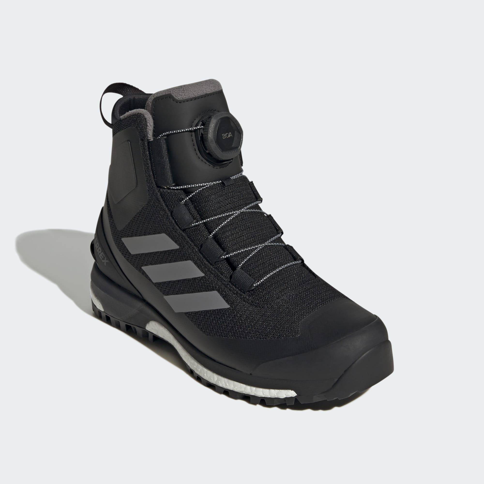 Mantén tus pies secos y abrigados a pesar de la lluvia y el frío. Esta bota de senderismo adidas Terrex te ofrece un diseño impermeable que te aísla del frío cuando caminas por la montaña en invierno. La tecnología COLD.RDY con aislamiento térmico PrimaLoft® mantiene los pies abrigados y la tecnología RAIN.RDY te aísla de la lluvia, la nieve y el granizo. El sistema de lazada rápida BOA® Fit System proporciona un ajuste perfecto y una pisada estable. La mediasuela con tecnología BOOST aporta mayor amortiguación e impulso con nieve o sin ella. La suela de goma Stealth de gran agarre garantiza una adherencia segura incluso en terrenos helados y resbaladizos.
