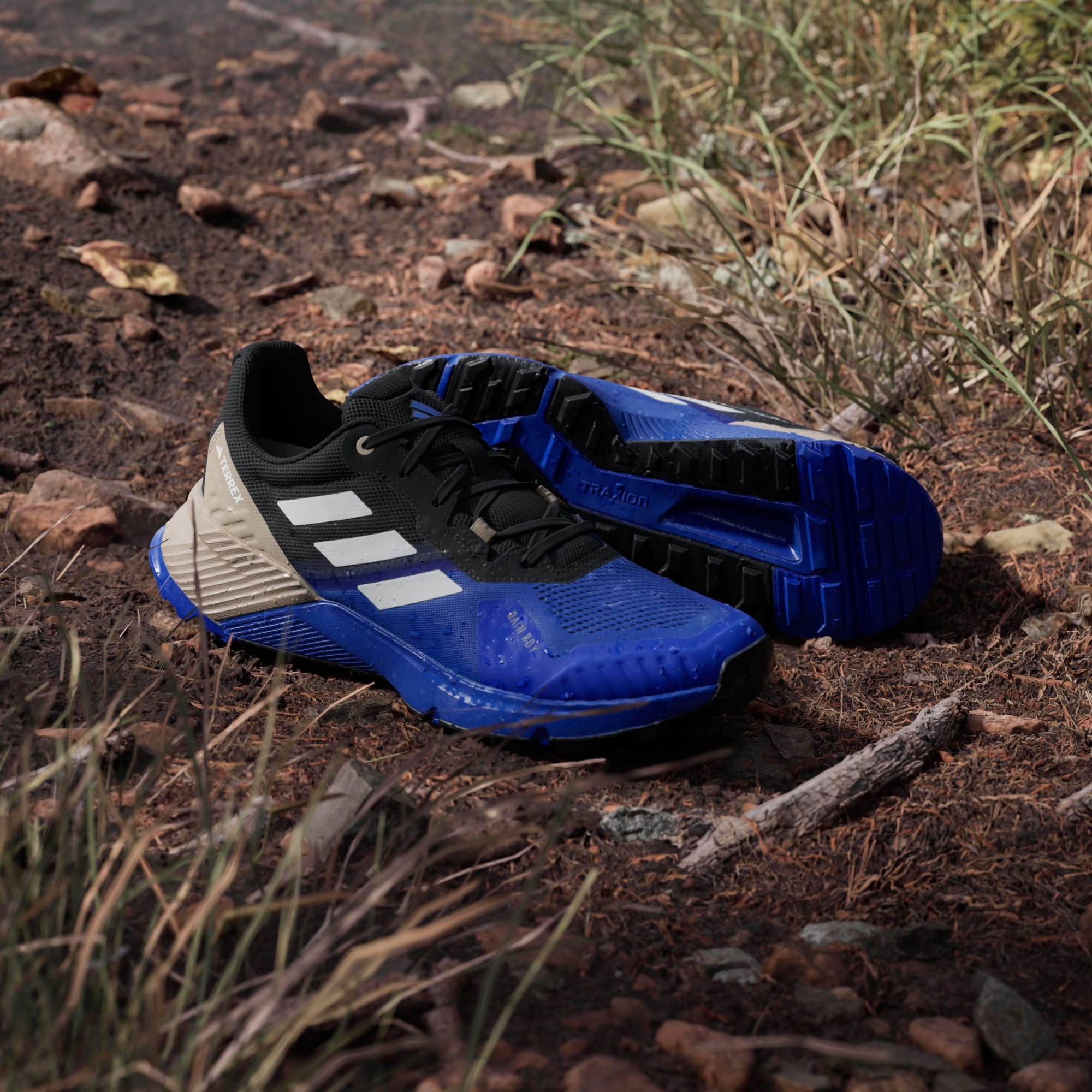 Esta zapatilla de trail running adidas presenta un diseño ligero que te brinda la amortiguación y el confort que necesitas en tus carreras de montaña. La tecnología impermeable RAIN.RDY mantiene los pies secos cuando saltas arroyos y zonas embarradas. La suela de goma Traxion te ofrece una adherencia óptima en cualquier dirección, tanto en asfalto como en senderos.