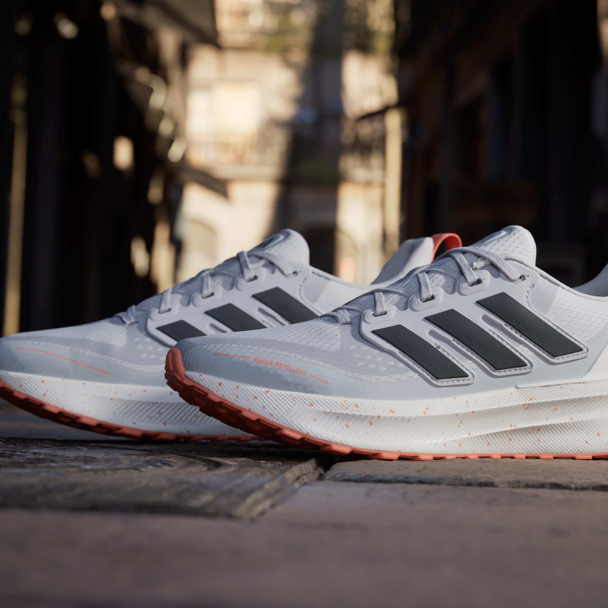 - Empeine de malla con acabado que repele el agua y detalles reflectantes